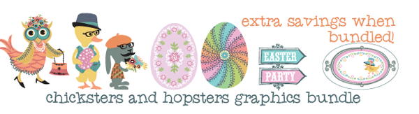 | The Chicksters and Hopsters Graphics Bundle includes 36 beautiful and creative papers, 4 graphic sets, and 10 fabulous Easter cards and invites! Buy the items separately or save big when you buy the bundle. | |||||